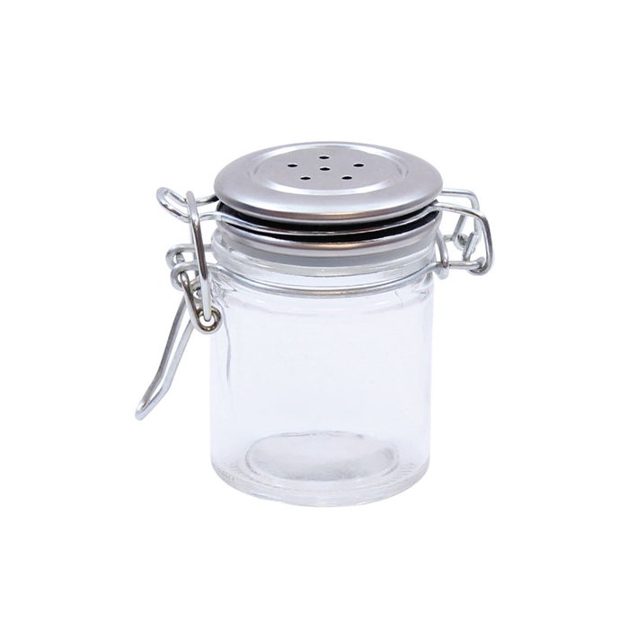 Fabricado en vidrio con tapa tipo clip en acero inoxidable Capacidad 45 ml Apto para lavavajillas