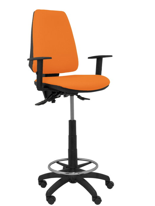 Taburete Elche con mecanismo Asincro tapizada con Tela color Naranja. Equipado con Base poliamida negra, Brazos 1D y Ruedas de nailon 50 mm