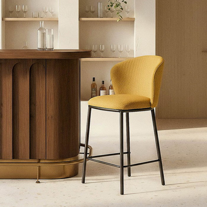 Taburete Espiga Mostaza Tejido-Metal 55 X 55 X 96 cm (Set de 2)