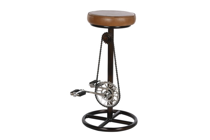 DKD Home Decor Taburete Vintage Leather 23 Piel Hierro Marron Negro Plateado 41 x 74 x 42 cm