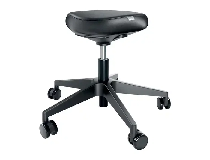 EL TABURETE LEITZ ERGO ESTÁ DISEÑADO PARA OFRECER COMODIDAD Y PRODUCTIVIDAD DURANTE TODA LA JORNADA LABORAL. SU ASIENTO TRIANGULAR TIPO SILLA DE MONTAR DISTRIBUYE EL PESO DE FORMA UNIFORME, MEJORANDO LA POSTURA Y REDUCIENDO LA PRESIÓN EN LAS PIERNAS. INCORPORA UNA EXCLUSIVA ESPUMA DE DOBLE DENSIDAD DE 9 CM, CON UNA CAPA INFERIOR FIRME PARA SOPORTE Y UNA EXTERIOR BLANDA PARA MAYOR CONFORT. REGULABLE EN ALTURA (46-59 CM) Y CUENTA CON ASIENTO DE PIEL SINTÉTICA FÁCIL DE LIMPIAR. DISPONE DE 5 RUEDAS PIVOTANTES APTAS PARA TODO TIPO DE SUELOS, QUE FACILITAN EL MOVIMIENTO Y AUMENTAN LA SEGURIDAD. SU BASE ANCHA (60 CM) PROPORCIONA ESTABILIDAD Y EVITA EL VUELCO. EL DISEÑO COMPACTO PERMITE GUARDARLO FÁCILMENTE BAJO EL ESCRITORIO. IDEAL PARA OFICINAS, HOGARES, TALLERES O ESTUDIOS, Y ESTÁ CERTIFICADO POR GS Y TÜV EN SEGURIDAD. FOMENTA UNA POSTURA ACTIVA Y SALUDABLE, AYUDANDO A REDUCIR MOLESTIAS Y MEJORAR EL BIENESTAR FÍSICO Y MENTAL.