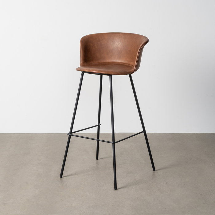 Taburete Marrón Metal / Simil Piel 44,50 X 48,50 X 93,50 cm Estructura de Polipropileno. Patas de Metal. Tejido de Pu. Relleno:Espuma
