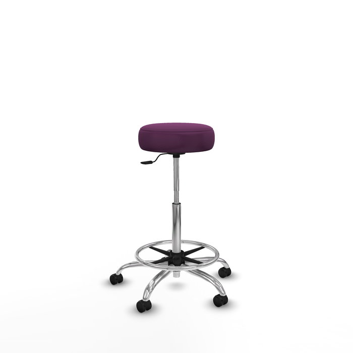 Taburete Tolosa con mecanismo Giratorio tapizada con Similpiel color No aplica y malla color Morado. Equipado con Base cromada, Sin brazos y Ruedas de parqué