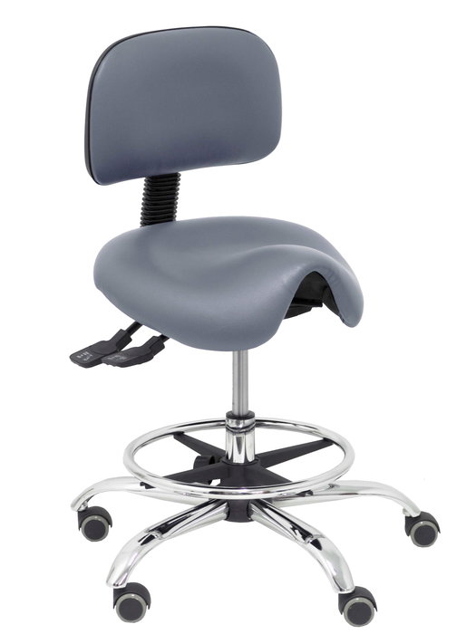 El taburete Zarza cuenta con un **respaldo regulable en altura**, lo que te permite ajustarlo a tu medida y garantizar una postura correcta mientras trabajas. Su diseño en **similpiel gris** no solo aporta un toque moderno, sino que también es fácil de limpiar y mantener.