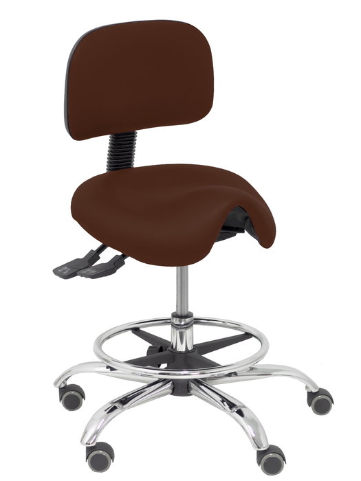 Taburete Zarza con mecanismo Asincro tapizada con Similpiel color Marrón oscuro. Equipado con Base cromada, Sin brazos y Ruedas de parqué