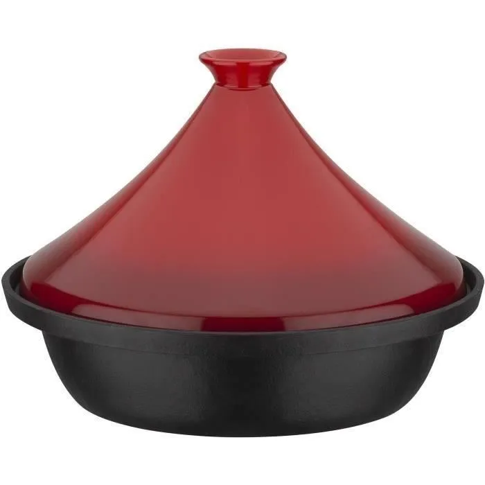 GSW GSW4005643717427 Tajín de Hierro Fundido Macizo con Tapa de Cerámica, 30 x 22 cm, Inducción, Rojo