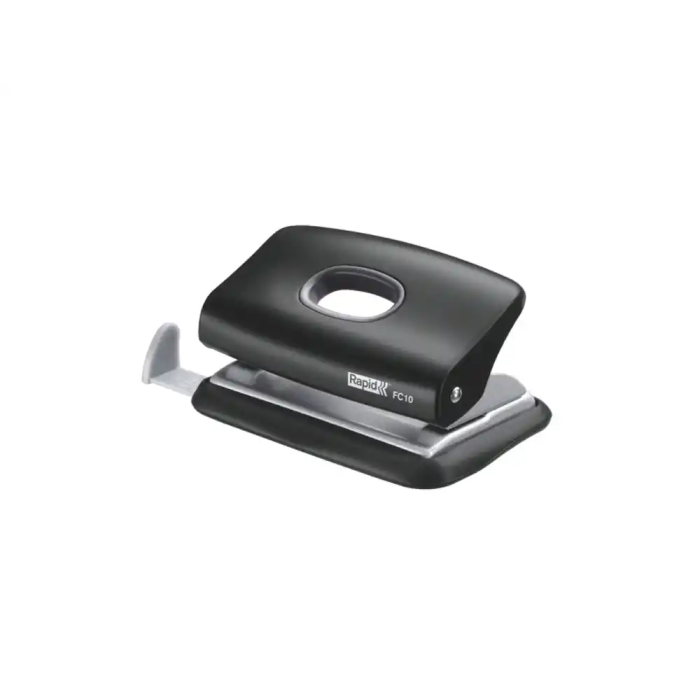 Rapid Taladro FC10 Negro para Uso Doméstico y Escolar, Portátil y Resistente, Perfora hasta 10 Hojas