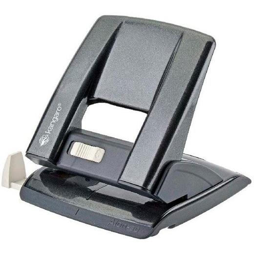 Taladro de tamaño mediano metálico con barra guía. Bloqueo de mango para un fácil almacenamiento. Bandeja de virutas extraíble. Capacidad: 30 hojas. Color: Gris. Medidas: 127 x 121 x 115 mm.