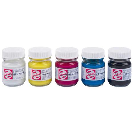 Talens Témperas Extrafinas Bote 50 mL - Set 5 Unidades Colores Primarios: Blanco, Amarillo, Rojo, Azul, Negro