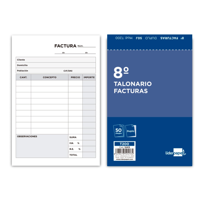 Liderpapel Talonario Facturas T200 Original y Copia 8º con IVA