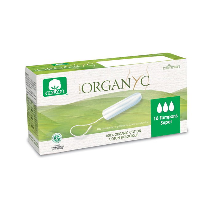 Tampón súper sin aplicador. Flujo abundante. 100% algodón biológico, hipoalergénico y transpirable. Ideal para pieles sensibles. Certificación ICEA. Envoltura individual.