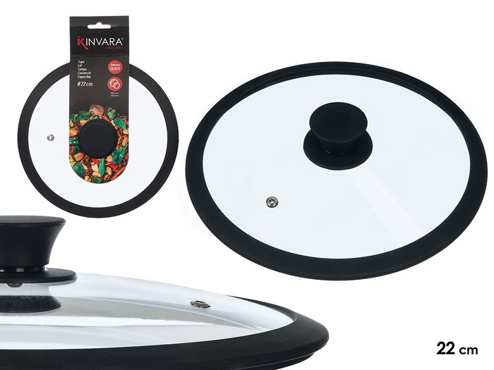 Kinvara Tapa de Cristal y Silicona Transparente con Borde Negro para Sartén de 22 cm (Set de 12)