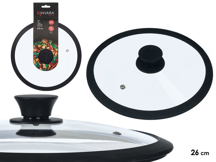 Kinvara Tapa de Cristal con Borde de Silicona Transparente y Negro 26 cm (Set de 12)