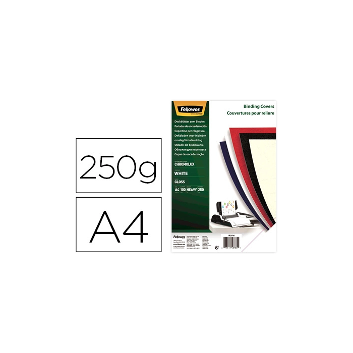 Fellowes Tapa Encuadernación A4 Cartón Brillo Blanco Chromolux 250 gr Pack 100 Unidades