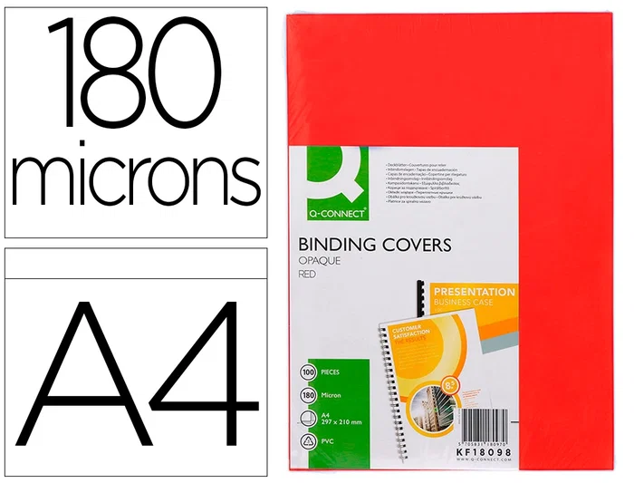 Q-connect Tapas de Encuadernación PVC DIN A4 Opaca Rojo 180 Micras Caja 100 Unidades