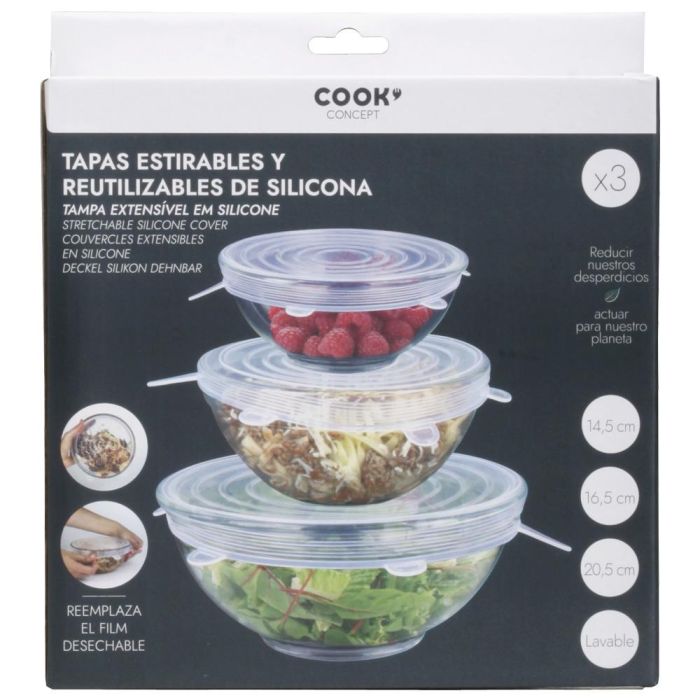 Cook Concept Juego de 3 Tapas Flexibles de Silicona Reutilizables para Recipientes de Cocina