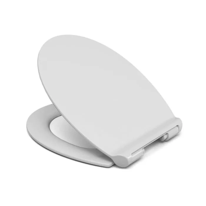 Asiento de inodoro universal extraplano y ergonómico - Moderno - Comodidad de uso gracias a sus funciones de freno de caída y desenganche - Higiene perfecta gracias a una superficie lisa y sin poros - Montaje rápido sin herramientas en la taza estándar.
