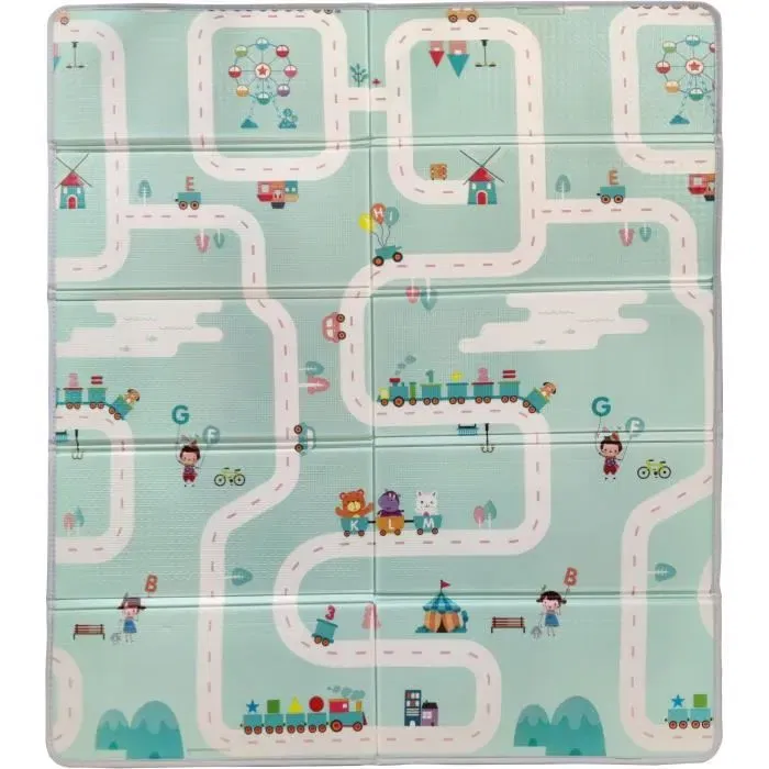 Tapete de juego reversible Maxi - TINEO - 150 x 180 cm - Diseño de animales / Pista de coches