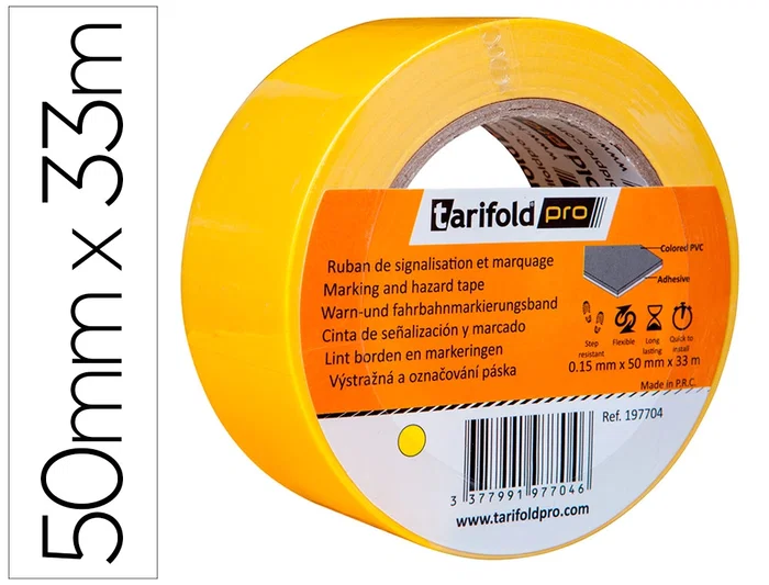 Djois Cinta Adhesiva para Marcaje y Señalización de Suelo, 50 mm x 33 m, Color Amarillo