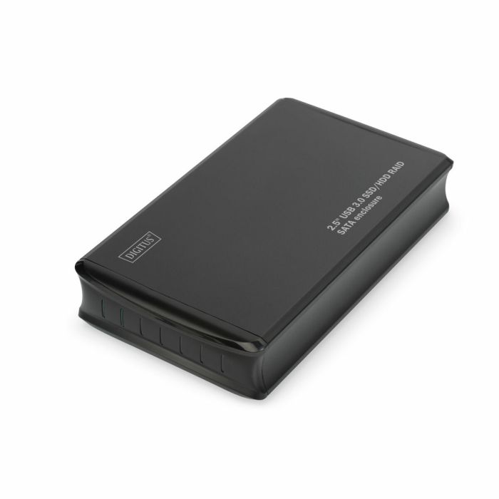 Evite la pérdida de datos importantes duplicando los discos duros - Permite la duplicación de discos duros para garantizar la capacidad de recuperación - Soporta la fusión de 2 discos duros (JBOD) - Permite el acceso separado a 2 discos duros (modo normal) La carcasa DIGITUS® SATA RAID SSD/HDD USB 3.0 de 2,5 pulgadas es la manera ideal de proteger datos importantes frente a pérdidas. La función RAID1 se puede usar para reflejar los datos, los datos se almacenan de manera idéntica en ambos discos duros. Con RAID0 los datos de dividen en bloque entre los dos discos duros. Otra posibilidad de la carcasa es la función JBOD, que permite combinar dos discos duros en un disco duro global. En el modo normal, ambos discos duros se muestran como discos duros separados. Los modos individuales se configuran a través del conmutador DIP en la carcasa. El puerto USB 3.0 de la carcasa proporciona una transferencia rápida de datos entre la fuente y la carcasa. La carcasa RAID también se puede conectar a un NAS o, por ejemplo, a un enrutador con puerto USB y función NAS, también es posible utilizar la carcasa RAID dentro de su red.