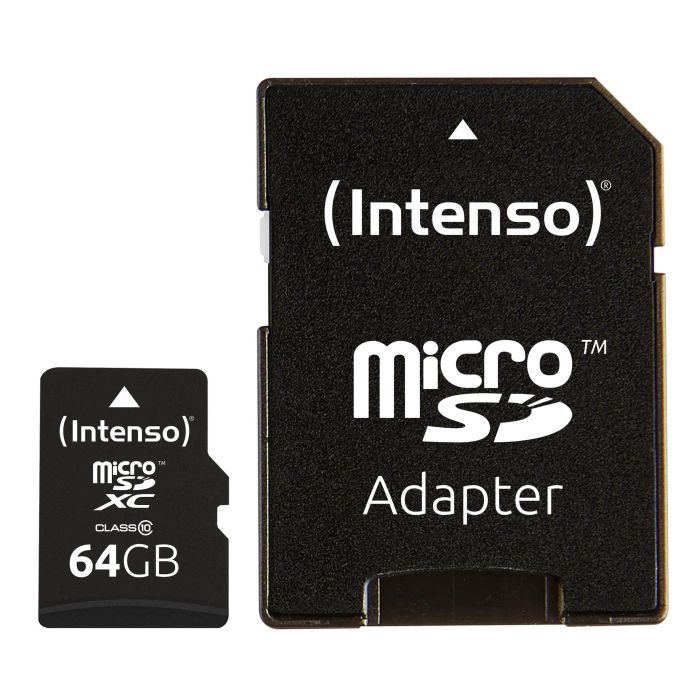 Intenso 3413490 Tarjeta de Memoria Micro SD 64GB Clase 10 con Adaptador - Velocidad Lectura 20MB/s, Escritura 12MB/s