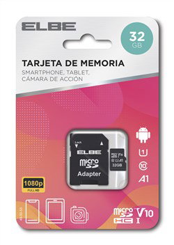 La tarjeta de memoria Micro SD de 32Gb ELBE cumple con los estándares UHS-I V10 y está indicada para la grabación y reproducción de vídeo con calidad Full HD (1080). Es compatible con cámaras de vídeo que admitan el estándar Micro SD como medio de grabación. También es compatible con cámaras compactas o reflex que admitan el estándar SD ya que incluye un adaptador SD a Micro SD. Con esta tarjeta de memoria Micro SD-32Gb ELBE podrá copiar sus ficheros desde su cámara de foto o vídeo hasta su ordenador de una forma mucho más ágil.