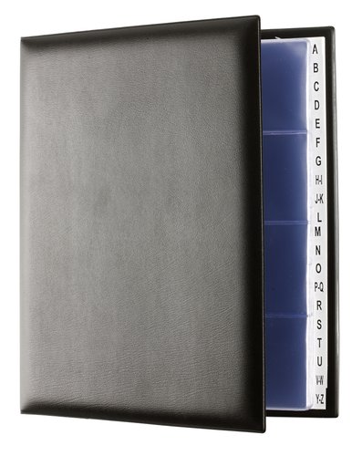 Carpetas de cuarto para la clasificación y archivo de tarjetas donde podrá ir aumentando las fundas según sus necesidades. Acabado en PVC de máxima calidad. Incluye 20 fundas interiores, y separadores A-Z.