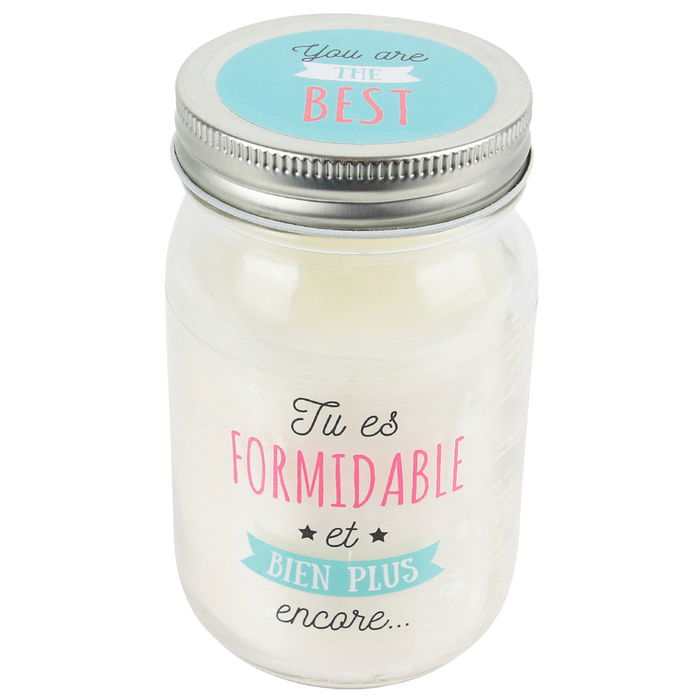 - Vela con mensaje en tarro con tapa de rosca.