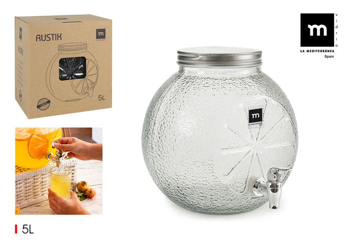 Tarro Dispensador C/Grifo 5L.Vidrio Mediterranea