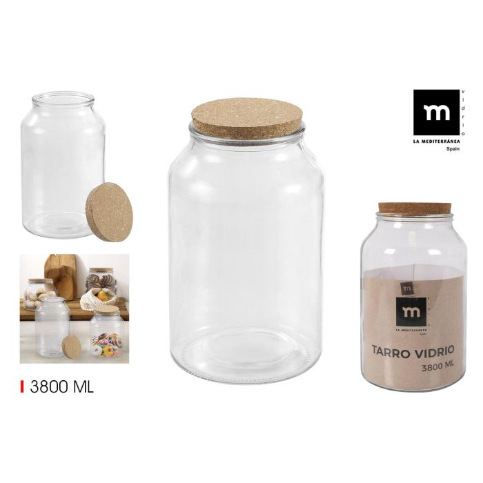 Tarro Vidrio Tapon Corcho 3800Ml La Mediterranea