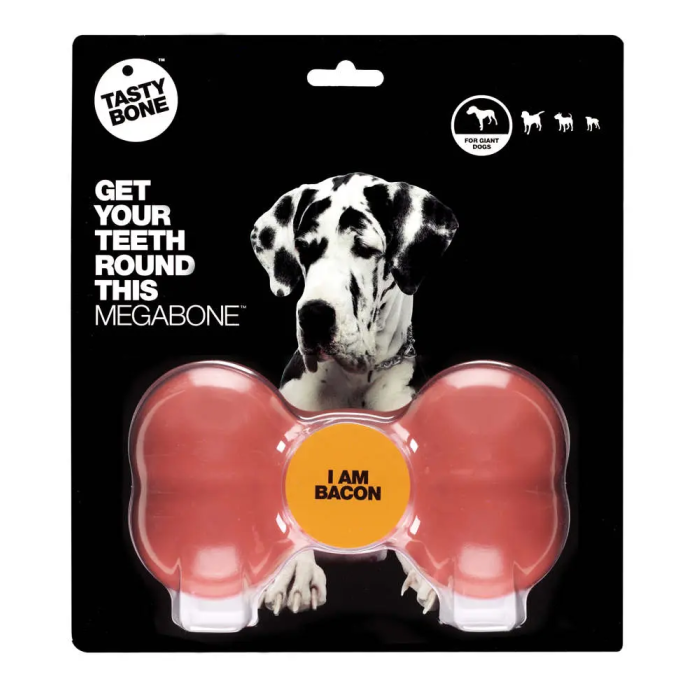 El hueso de mordida Tasty Bone Mega Bacon está diseñado para perros grandes, ofreciendo una experiencia de masticación duradera y satisfactoria. Fabricado con materiales de alta calidad, este hueso es perfecto para mantener a tu mascota entretenida y ejercitar sus instintos naturales de morder. Su sabor a bacon atrae a los perros, incentivando un juego saludable y seguro. Ideal para perros que disfrutan de masticar durante horas. Marca: Tasty Bone.