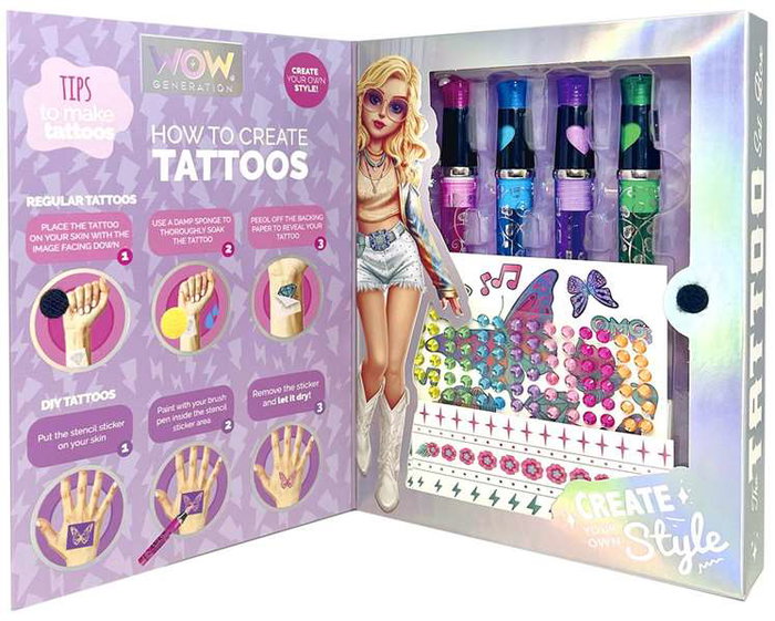 Wow Generation Juego de Tatuajes Brillantes con Bolígrafos de Purpurina de Colores - Caja Creativa para Niños