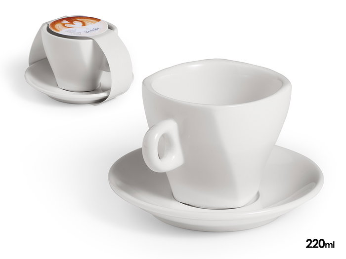 Vessia Taza de Café de Porcelana Boca Ancha con Plato 220ml - 13.5x9.2x13.5 cm (Set de 24)
