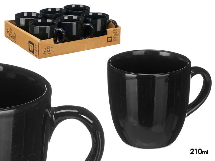 Vessia Taza Cafe Con Leche Negro 210 ml Ceramica Loza 11x8x8cm (Set de 24)