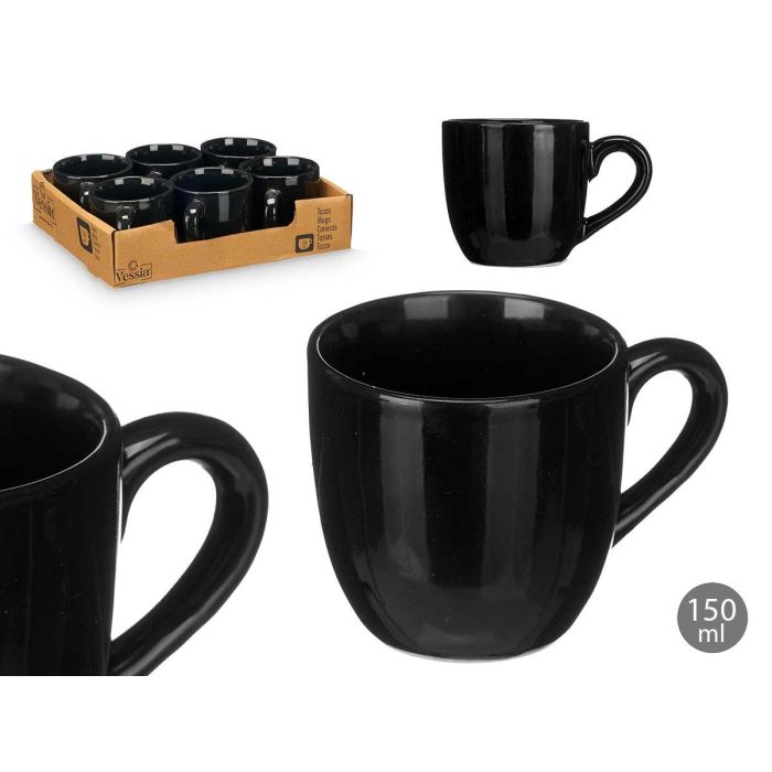 Vessia Taza Cafe Negro 150 ml Cerámica Loza Acabado Brillo Medidas 10x7x7 cm (Set de 24)