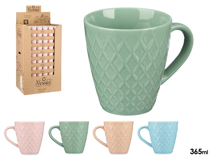 TAZA CERAMICA DIAMANTE 9CM COL PASTEL SURTIDOS 365ML