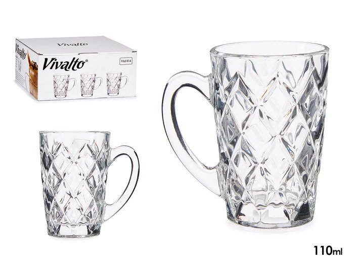 Vivalto Taza de diseño Diamante en Cristal/Glass, 110 ml, Dimensiones 6x9x9 cm (Set de 48)