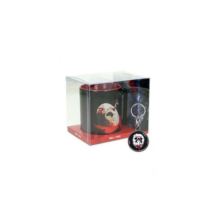 Este pack es un regalo perfecto para los fans del cine de terror y, en especial, de la saga "Viernes 13". Incluye una taza decorada con la mítica máscara de Jason Voorhees, un póster a juego y un llavero metálico de regalo. Una combinación ideal para acompañar tus maratones de películas o para completar tu colección de objetos temáticos.