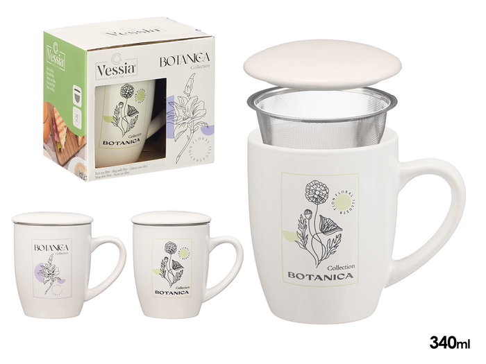 TAZA PORCELANA BOTANICA TAPA FILTRO SURTIDOS 340ML