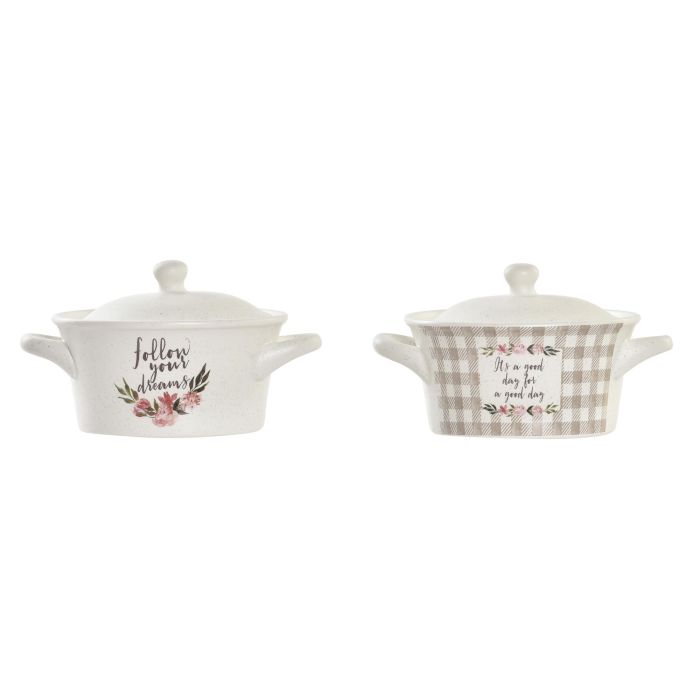 DKD Home Decor Tazon Gris Blanco 12 Unidades Porcelana New Bone Microondas Lavavajillas 13 x 9 x 16.5 cm