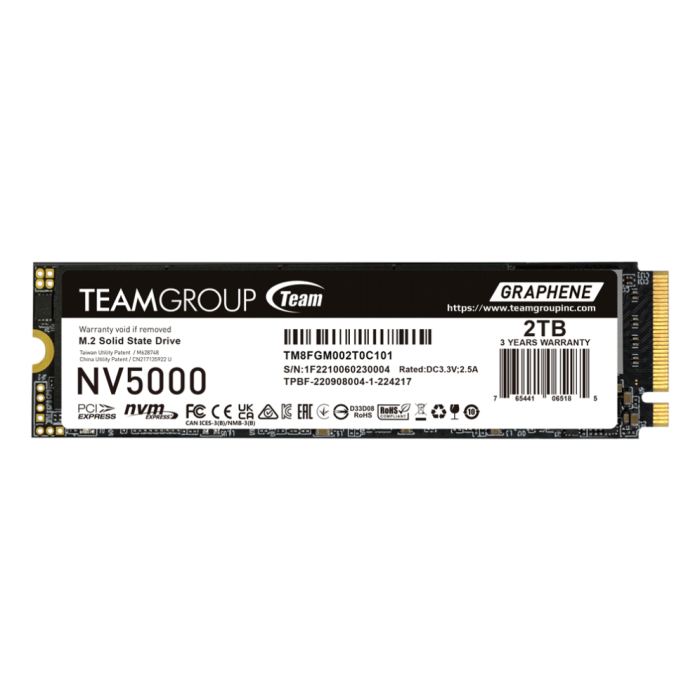 Team Group TM8FGM002T0C101 SSD NV5000 M.2 NVMe PCIe 4.0 x4 2TB Lectura 5000MB/s