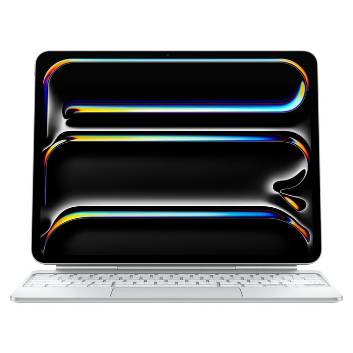El Magic Keyboard para el iPad Pro con trackpad integrado es comodísimo para escribir. Además, tiene un nuevo diseño fino y compacto con reposamuñecas en aluminio. Incluye 14 teclas de función que te dan acceso directo a funciones como el brillo de la pantalla o los controles del volumen, y un conector USB‑C de carga simultánea. Su diseño con apoyo flotante te permite ajustar el ángulo de la pantalla como prefieras.