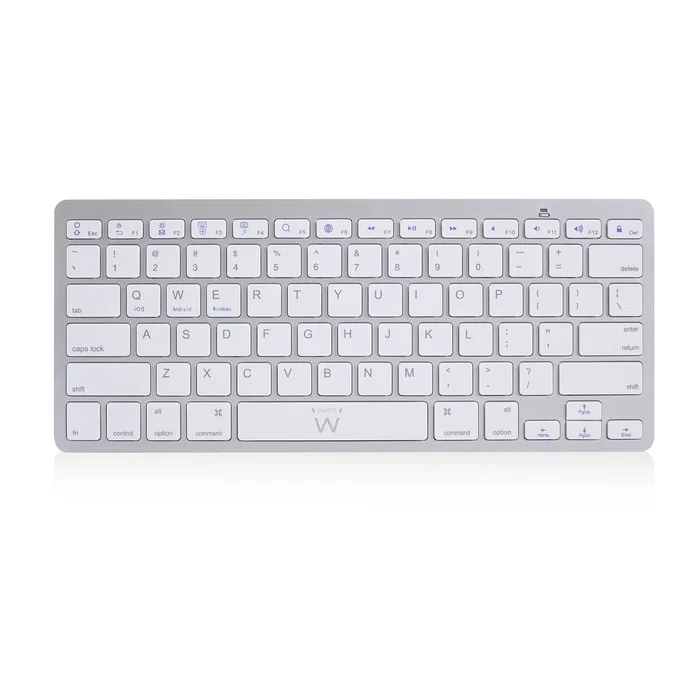 Ewent EW3161, Completo (100%), Inalámbrico, Bluetooth, Interruptor mecánico, QWERTY, Plata, Blanco