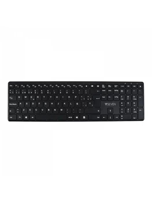 V7 Teclado KW550ESBT Bluetooth y USB 2.4 GHz Inalámbrico Dual Modo, QWERTY Español Completo Negro, Perfil Ultrafino