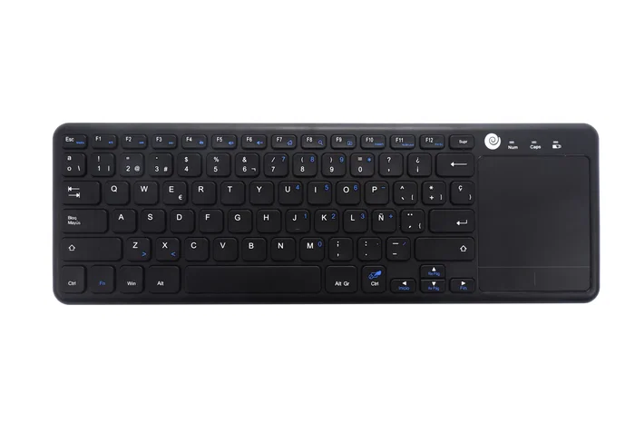 Un teclado inalámbrico con alcance de hasta 10 metros para Smart TV, Ordenador portátil, TV Box, Tablet o Smart TV: para que escribas y navegues desde el sofá, controles el ordenador portátil al conectarlo a la tele o una Smart TV con mayor comodidad de la que ofrecen los mandos de televisión convencionales. Con 78 teclas tipo chiclet (12 de ellas multimedia) y touchpad multitáctil con 2 botones integrados. El touchpad además se puede bloquear desde el teclado pulsando Fn + Ctrl derecho.