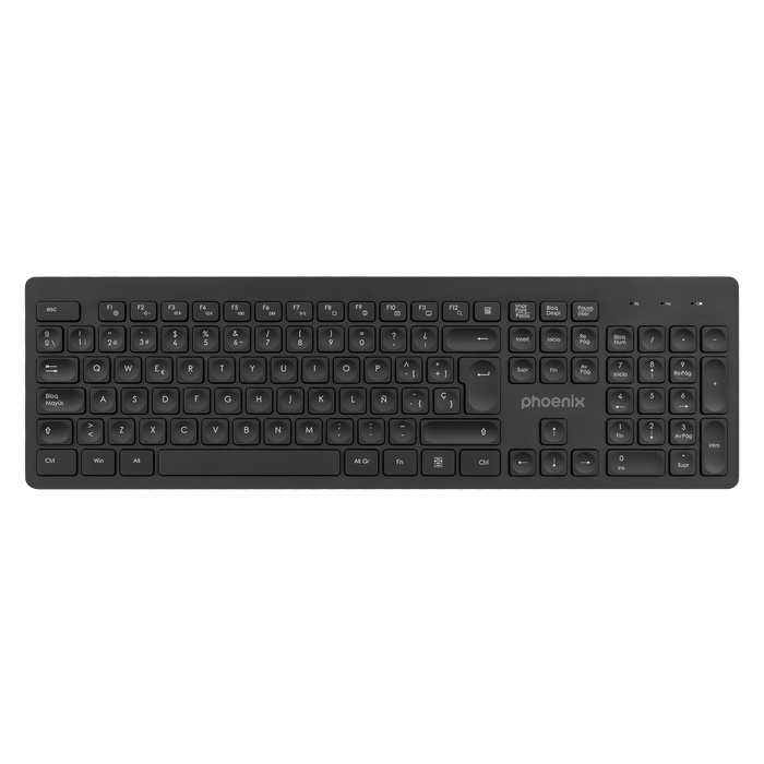 Phoenix Teclado Inalámbrico K200 QWERTY Negro con Conexión 2.4GHz, Teclas Multimedia y Diseño Ergonómico para Windows, macOS, Linux