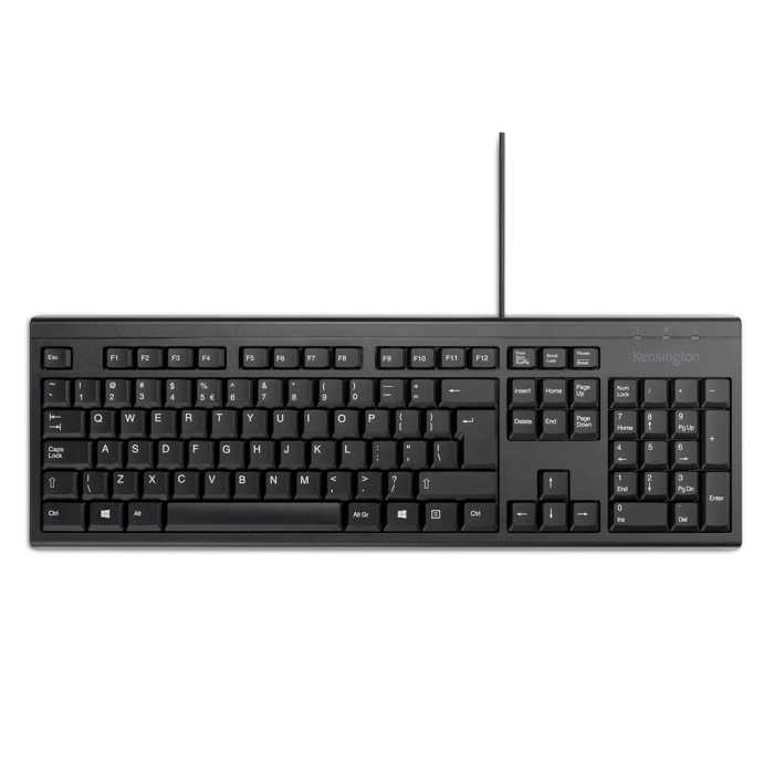 Kensington Teclado KB100 EQ con Cable USB-A, Negro, Tamaño Completo, Resistente a Salpicaduras, 65% Materiales Reciclados