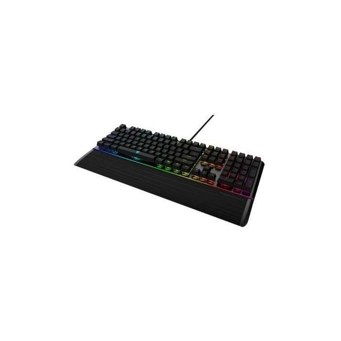 Este delgado teclado mecánico Gaming se presenta en un panel de aluminio con un diseño de tecla flotante. Además de tener iluminacion RGB bajo las teclas, dos tiras de LED RGB se extienden por la parte superior e inferior del teclado, lo que le permite visualizar sus colores y numerosos efectos personalizables a través del software.