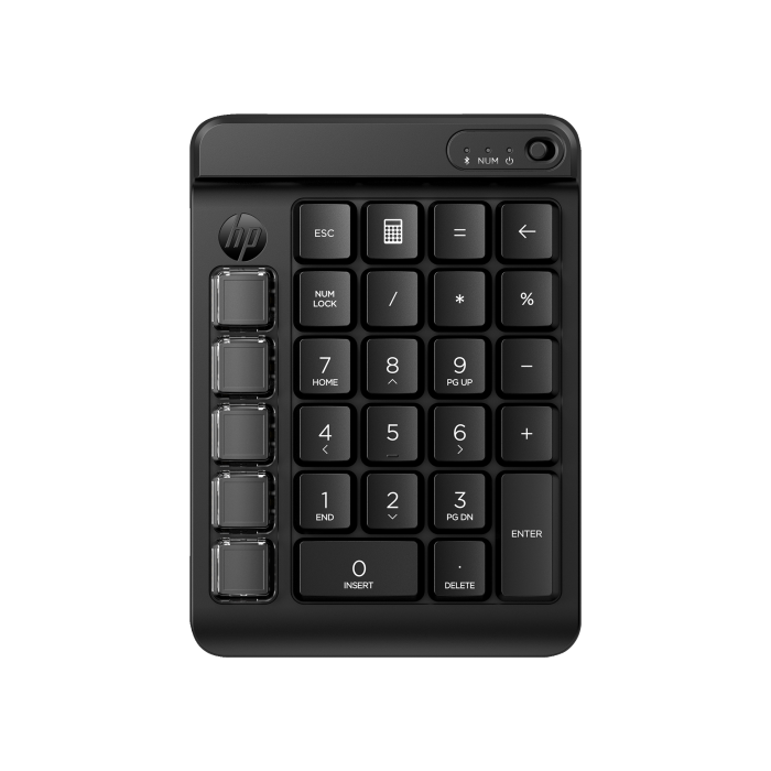 Saque más partido a su teclado numérico que a los números. El teclado numérico inalámbrico programable HP 435 es totalmente personalizable para ofrecerle un control total. Además del diseño estándar del teclado numérico, puede configurar una columna de cinco teclas en blanco como desee. De hecho, este teclado numérico tiene nueve teclas programables con teclas intercambiables para una variedad infinita de opciones de flujo de trabajo.Crea tu nueva tecla favorita