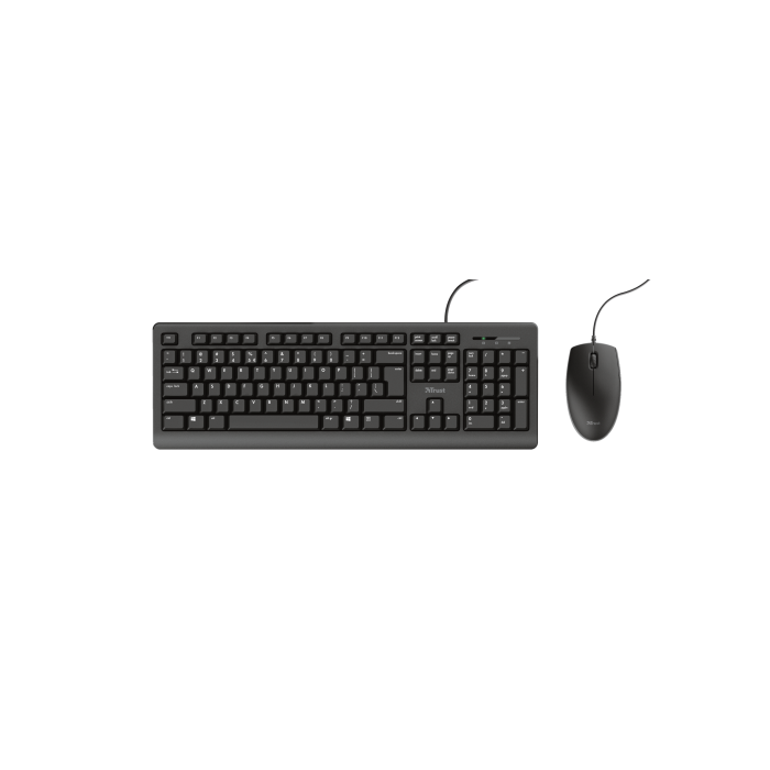 Pack de teclado y ratón silenciosos para trabajar cómodamente Apostar por lo básico Hay teclados de todas las formas y medidas, ¿pero qué pasa si uno solo quiere algo básico? Eso es lo que ofrece exactamente el Trust Primo. Tiene un diseño de tamaño completo, teclas resistentes al vertido de líquidos y permite ajustar su altura. Incluso se suministra con un ratón sencillo ambidiestro para empezar a trabajar tan pronto se conecta este juego en el PC. El teclado Primo responde exactamente a las necesidades de cada usuario. Comodidad Un buen teclado tiene que resultar cómodo. Las teclas de perfil bajo de este teclado de tamaño completo y los soportes plegables proporcionan precisamente la comodidad necesaria que facilita la concentración en el trabajo. No hay que preocuparse de si cae algún líquido en el teclado Primo, ya que su diseño resistente a los vertidos permite seguir trabajando sin problemas. Así que sírvase otra taza de café y a por todas. Fácil Conecte el cable USB de 180 cm y listo. Cuando hay trabajo por hacer, a nadie le gusta tener que preocuparse por la instalación de software o la configuración de macros. El teclado Primo es un caballo de batalla que permite centrarse en el trabajo. Ratón Este juego se suministra con un ratón sencillo y fácil de utilizar para garantizar que se tiene todo lo necesario para empezar a trabajar rápidamente. Su diseño ambidiestro significa que tanto los usuarios diestros como zurdos pueden utilizarlo cómodamente, y su acabado de alta calidad garantiza un agarre firme en los proyectos digitales.